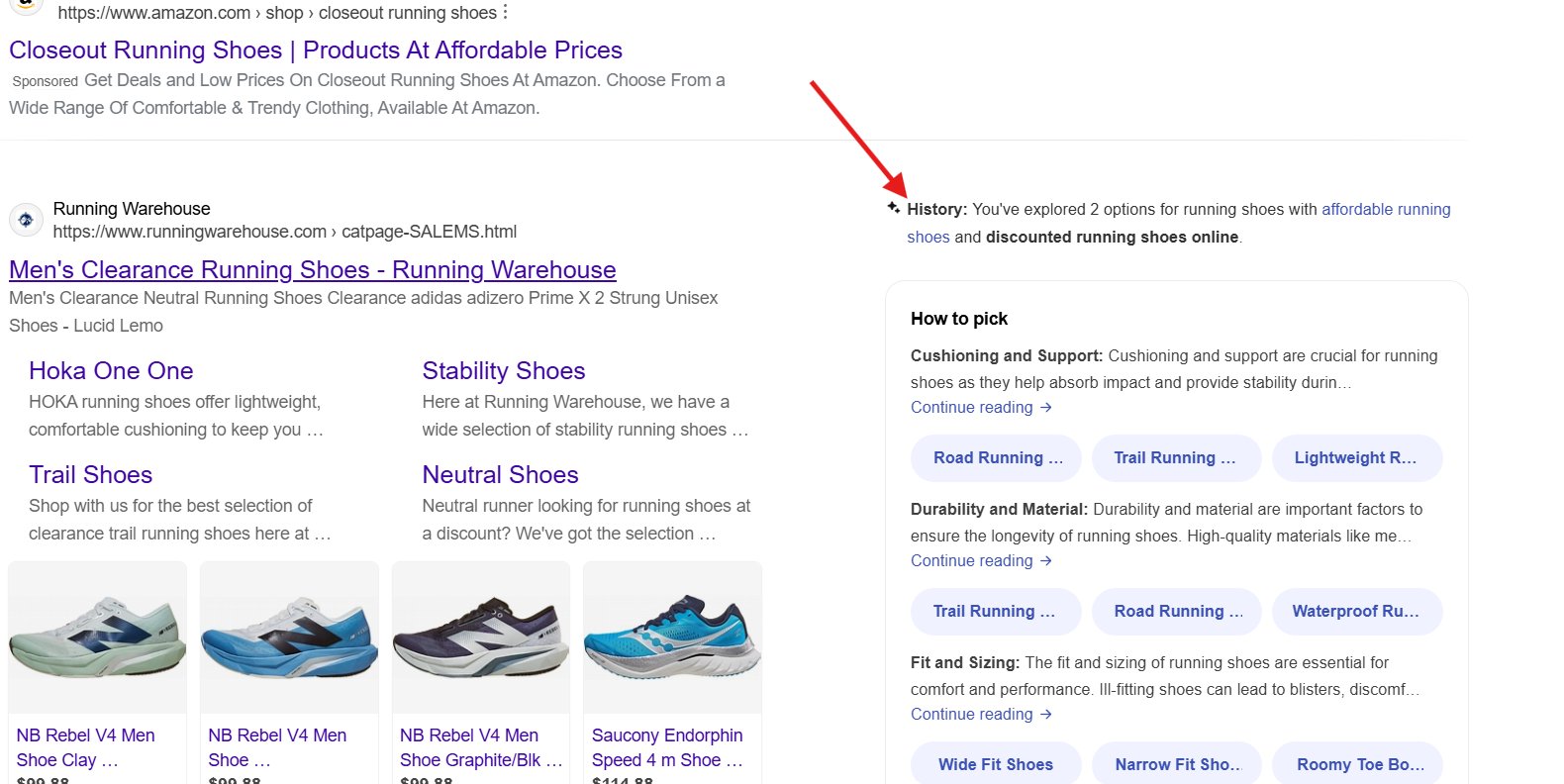 Then refined to “affordable running shoes”