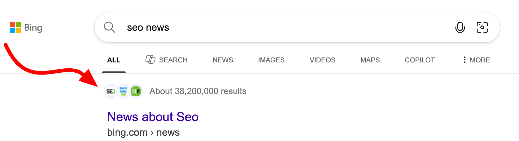 Bing result count shows with top 3 icons — and clicking on any icon redirects you to their respective pages.@rustybrick pic.twitter.com/lM4uYZTFWY