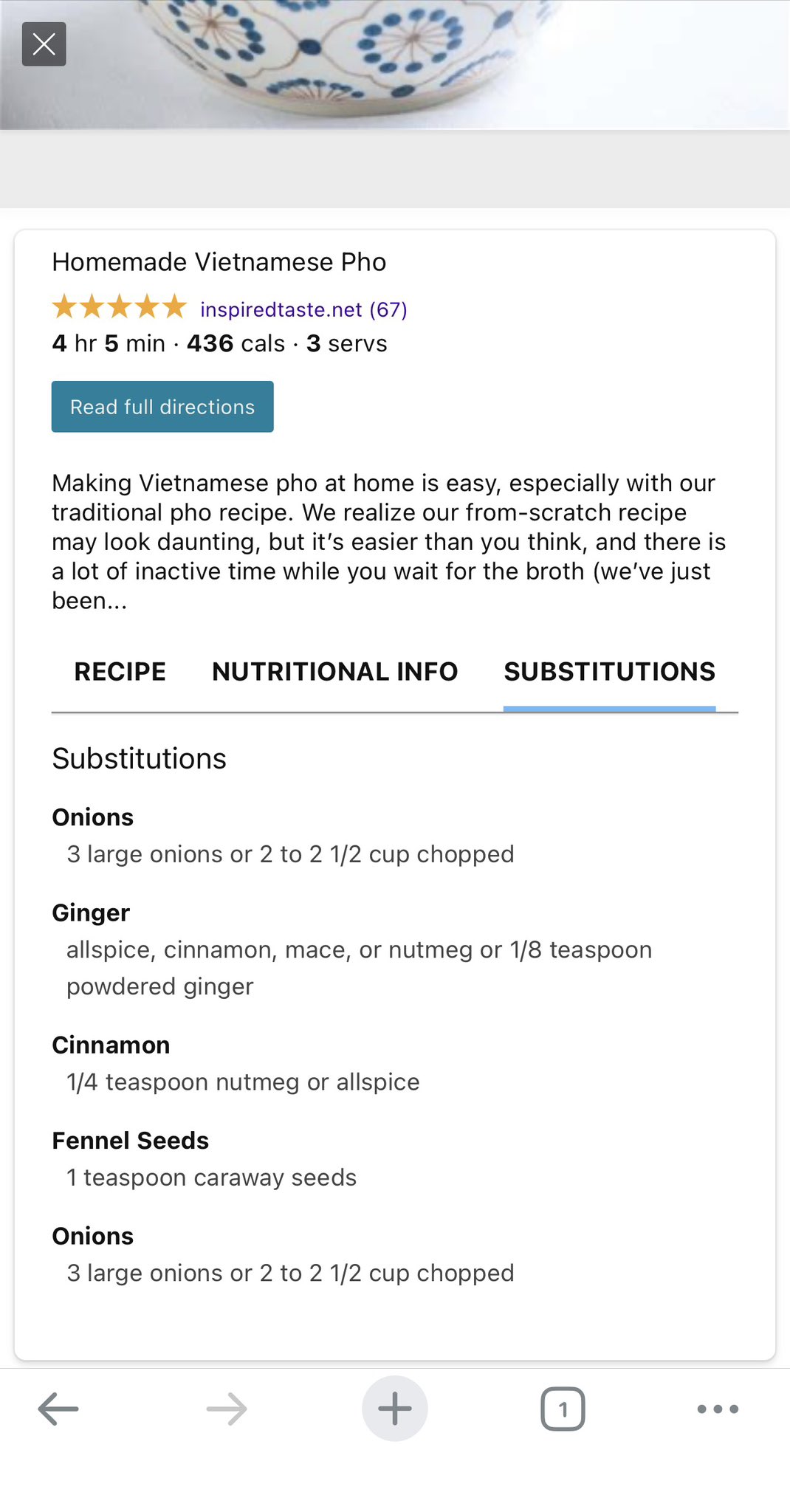 This is in response to the folks at Inspired Taste writing, "We are still waiting for the completely made up Bing ingredient substitutions on recipe cards to be removed or have a warning added saying that these aren’t our suggestions. We would not recommend substituting ginger with mace in pho. Or any of these suggestions really."