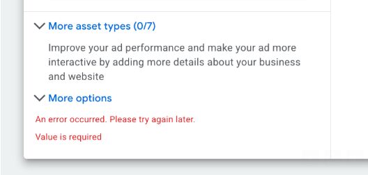 Chelsea Harding posted about the issue on LinkedIn (hat tip PPC News Feed) and wrote, "If you are receiving the below error when you try to edit and save existing asset groups, you aren't alone! I have been unable to do so for the last few days now."