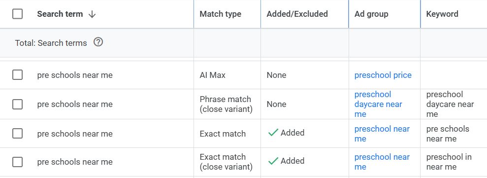 Hi Brad Geddes, really appreciate you sharing these insights & examples. We looked into examples where it seemed AI Max wasn’t following our prioritization rules. We found that the matching occurred because of an autocomplete suggestion in Maps search.Essentially, a user started typing something like "dayca," and "daycare near me" was suggested and the user was shown an ad with the suggestions. Standard keyword matching wouldn't connect the partial query to the exact match keyword, but with AI Max enabled, it could match and deliver an incremental search.
