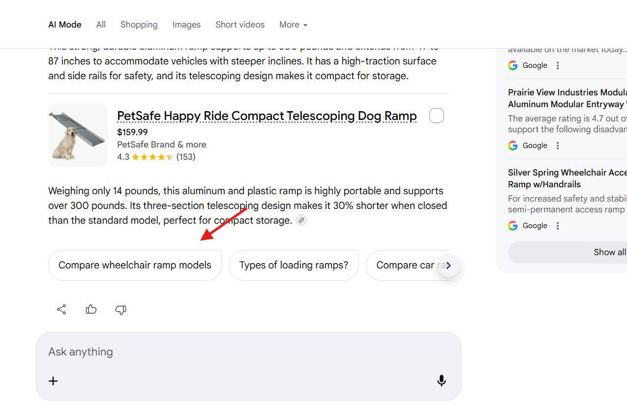 We saw Google test follow up questions below the AI Mode responses back in July. Now Google is testing follow up search suggestions, not necessarily in question format, at the bottom of some AI Mode results.