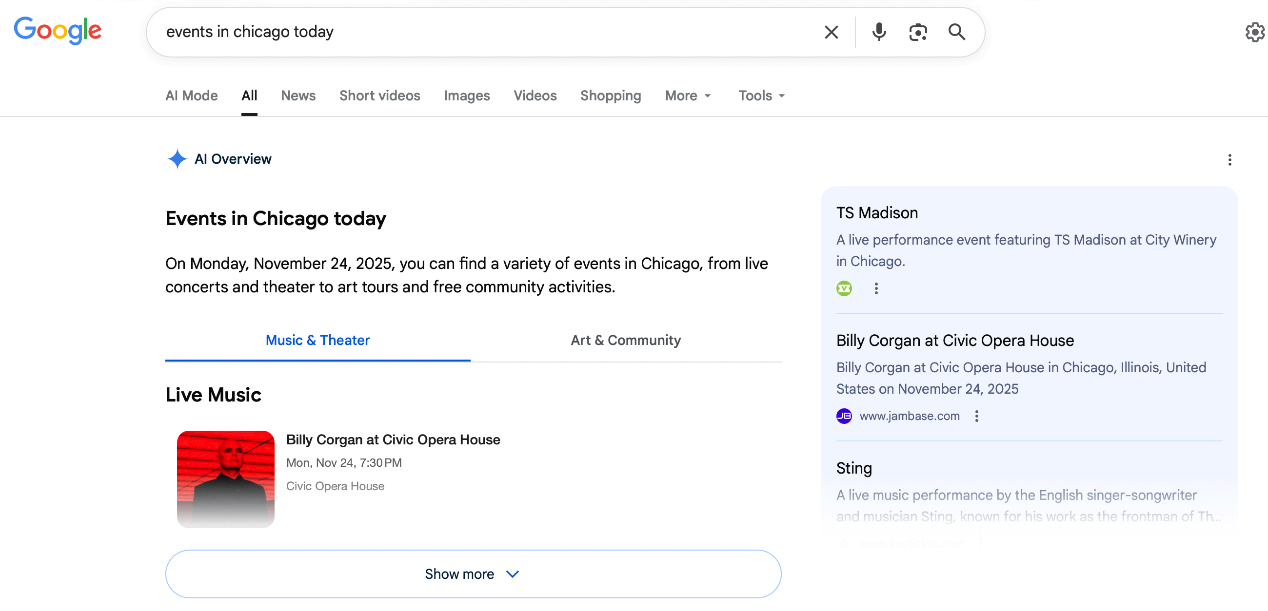 Google has updated how it shows events within AI Overviews. It can now show the direct display of events, instead of an event summary. It is also a bit buggy, but here is how it looks.