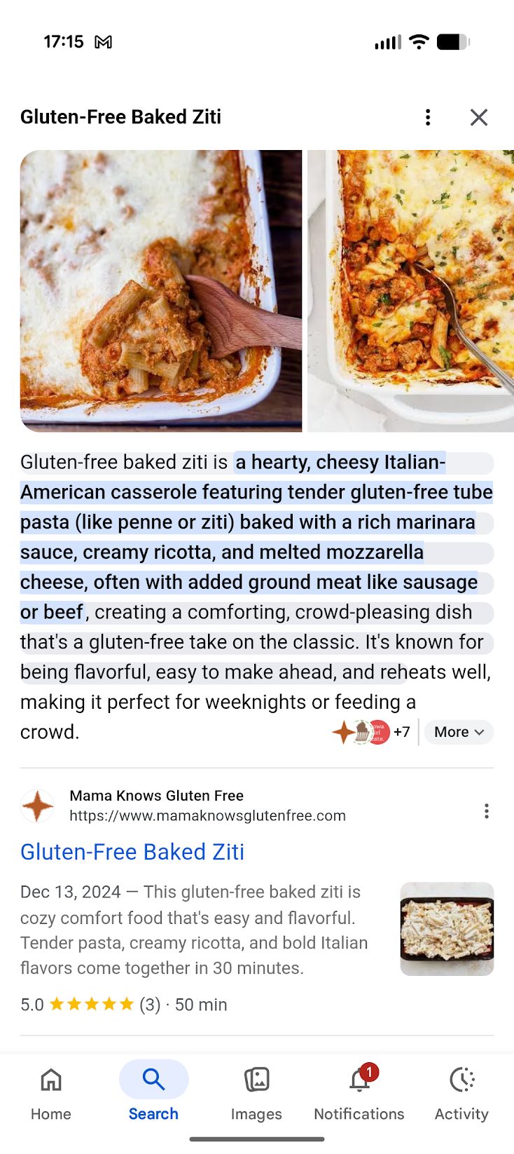 Tom reached out about this the other day and we haven’t been able to recreate yet. It is an interesting very ackward test. On one hand there are links (yay!) but you have to click from a full Frankenstein default recipe in some cases he showed me to open the link knowledge panel. It is a step in a better direction since there are eventually links but is seems extremely ackward and we can’t support anything that starts from a full Frankenstein recipe no matter what. At least they are testing links though and in Tom’s screenshots shown here there are just recipe idea examples that open the link knowledge panel. This is better than no links in sight. We are testing a lot so we are going to keep an eye out for it!