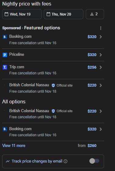 Google is testing showing the option ot track price changes for hotel results by email. We saw Google announce a similar feature back in March but now it is showing in the local hotel pack results in core search.
