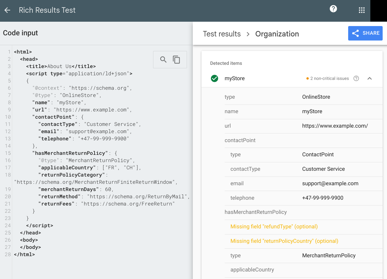 Google has expanded its support for return policy structured data to allow you to add the return policy to the organization level, and not have to specify that policy on each and every product detail level. Last year Google began supporting return policies in structured data but at the individual product level - now it is also supported at the organization level.