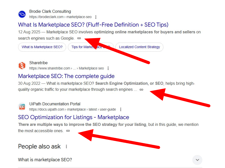Google is testing the paperclip style icon in the search results, by the search result snippets and description. Clicking anywhere on the paperclip or the snippet will take you to the webpage.