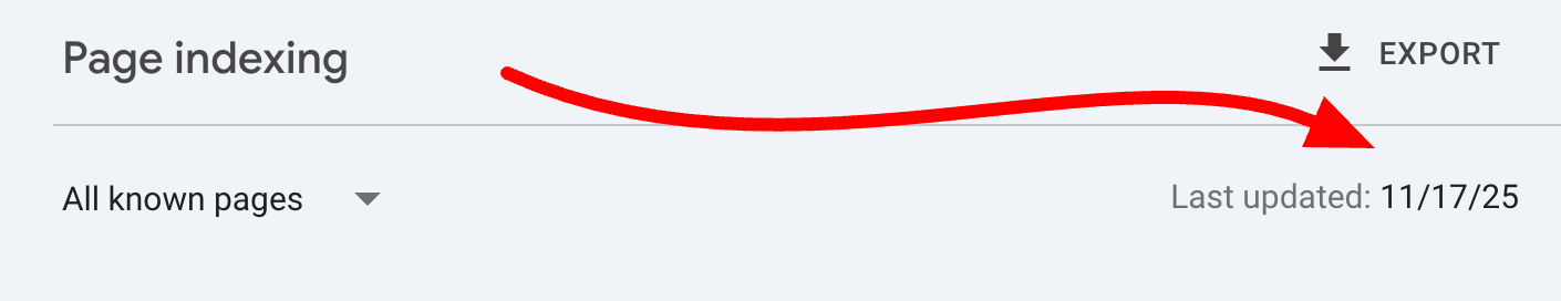 Google Search Console's page indexing report is delayed again, stuck at two weeks ago, November 17, 2025. This is a much longer than normal delay for this page indexing report, but it is just a reporting issue and it does not mean your site has any issues with indexing.
