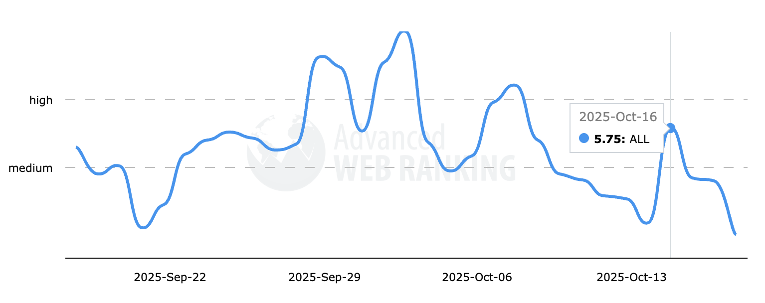 There may have been another unconfirmed Google search ranking update that occurred between October 15th and October 18th. The bulk of the volatility seemed to be around Thursday, the 16th.