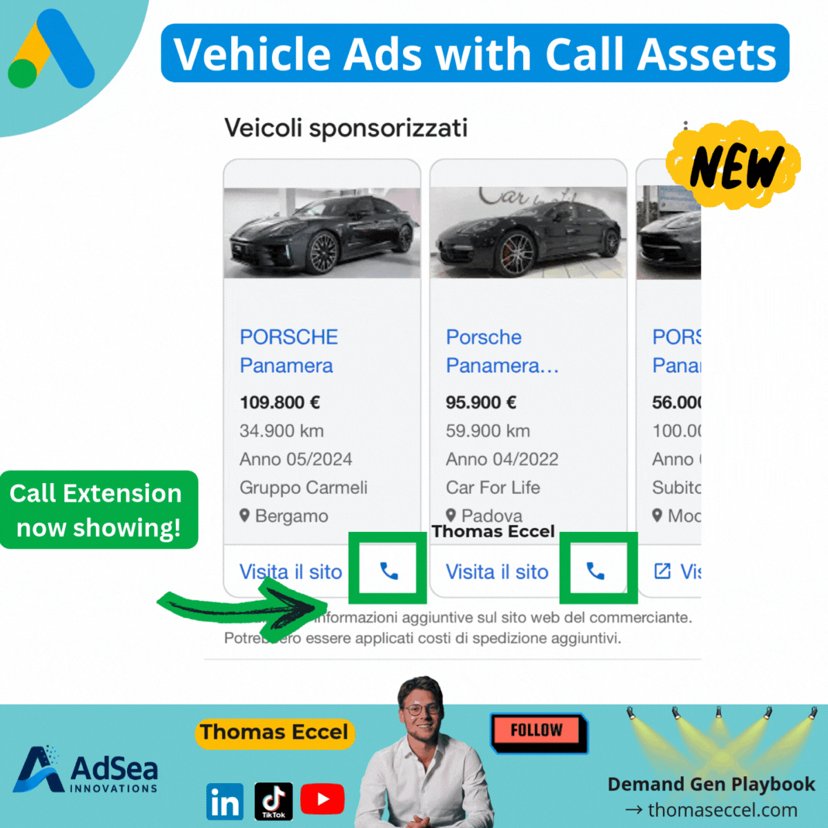 Thomas Eccel posted about it on LinkedIn calling this new, he seems to be right or at least, it was never covered before. Eccel wrote, "Google is now showing Call Assets directly inside Vehicle Ads." He said this means direct calls to the dealership and faster leads. He called this "huge for automotive advertisers," - sure, not sure how huge but it is a change.