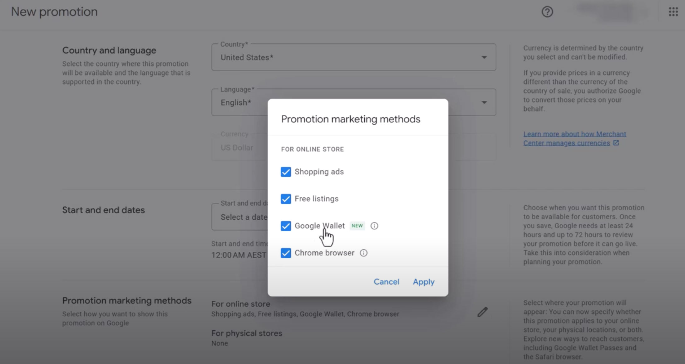 When you head into Google Merchant Center → Promotions → Add Promotion, you’ll now see a new option under marketing methods: Google Wallet.This means that promotions can now be tied to Google Wallet, although there is currently limited documentation from Google on how this will work in practice. It should behave similarly to how promotions currently appear in Chrome.