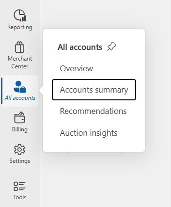 Microsoft made a small update to the Microsoft Advertising console where there is now an "All accounts" tab. This lets you see all your accounts in one place with quick access to account summaries, recommendations and more.