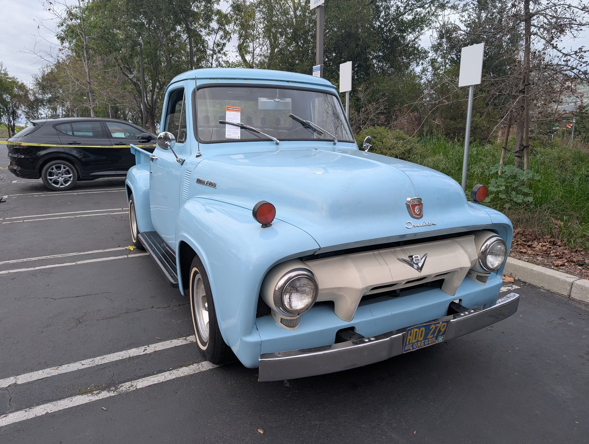 This 1955 Ford F-100, a classic pickup truck, was parked at the GooglePlex, the main Google headquarters in Mountain View, California.