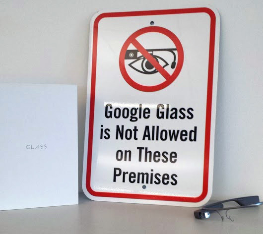 Nick Starr was banned from using Google Glass at his office and as a joke, I think, one of his coworkers bought a sign and hung it up in his office.
