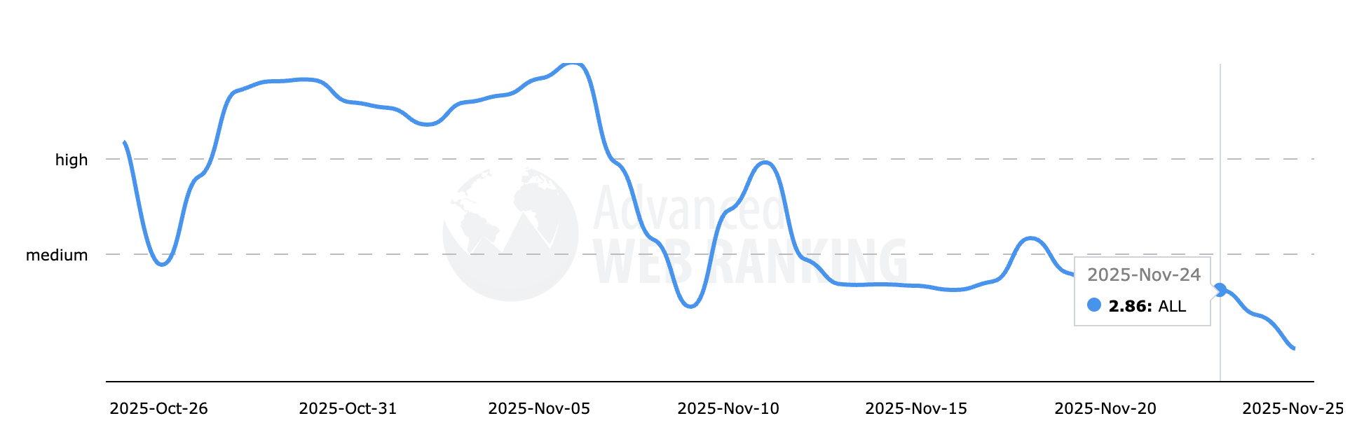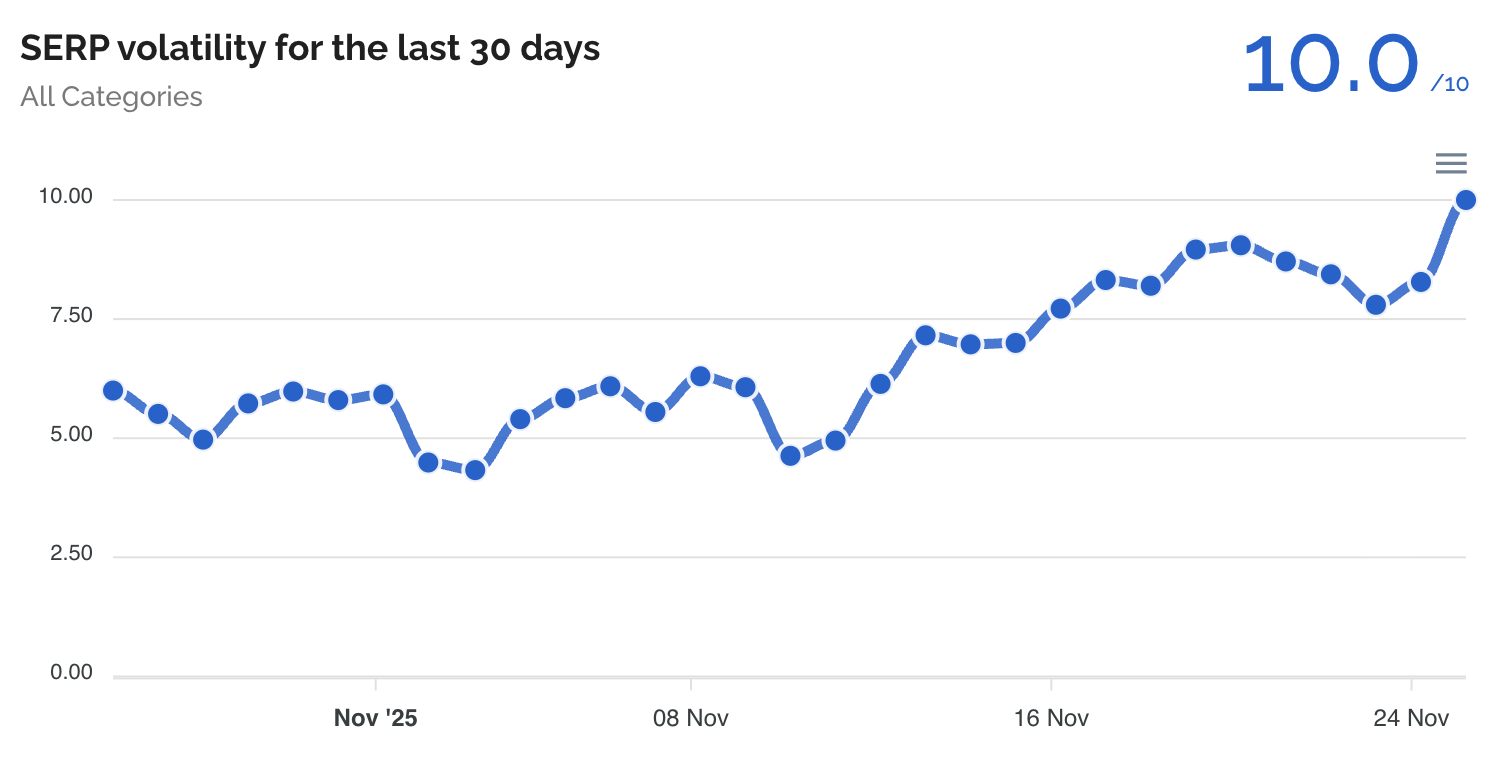 Google may have pushed out a Google search ranking update over the past couple of days. Although the chatter was somewhat quiet, it picked up today and some of the tools are also picking up on an update. I suspect the update and volatility started a couple of days ago, maybe on Monday, November 24th.